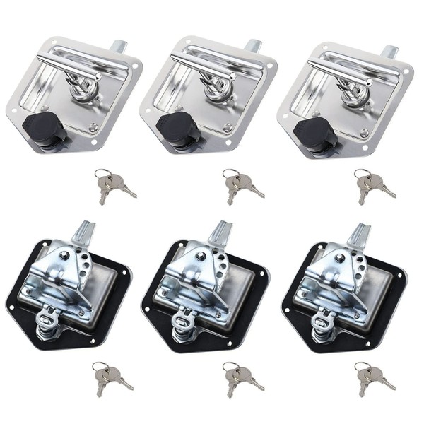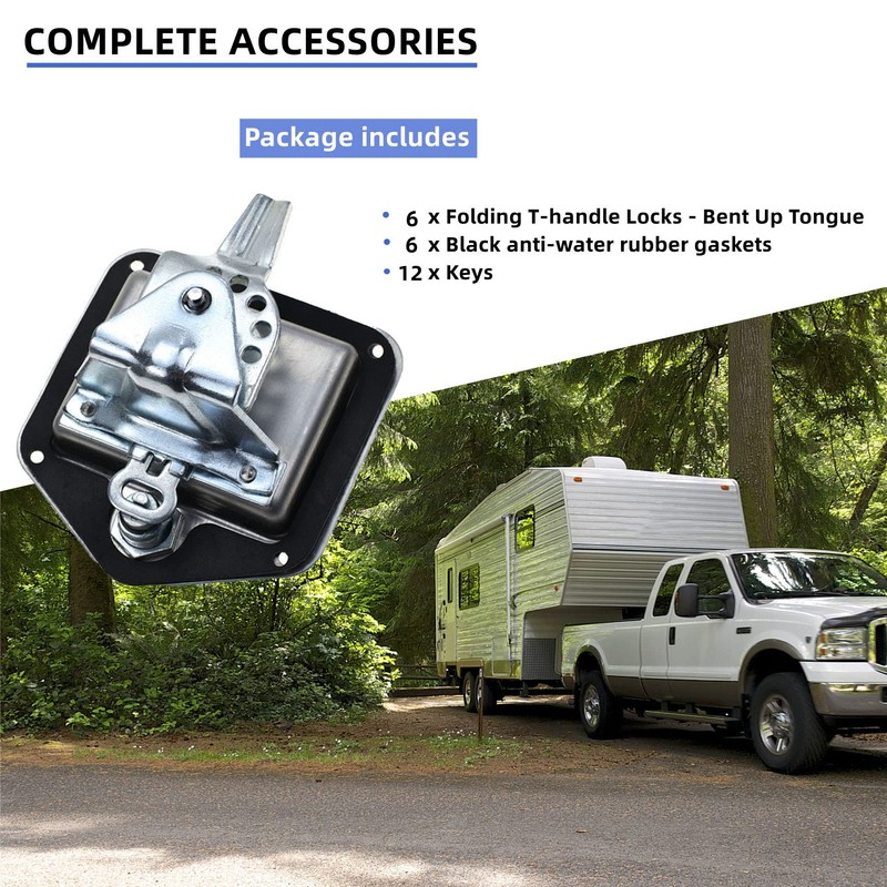 - COMPLETE ACCESSORIES: Package includes: 6 x Folding T-handle Locks - Bent Up Tongue, 12 x Keys, 6 x Black anti-water rubber gaskets.