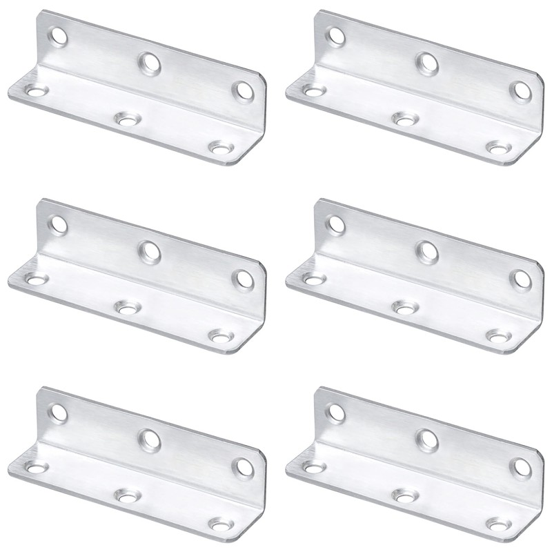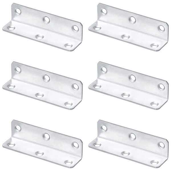 6 PCS Stainless Steel Corner Braces,L-Shaped Extended Fastening Brackets (Silver)