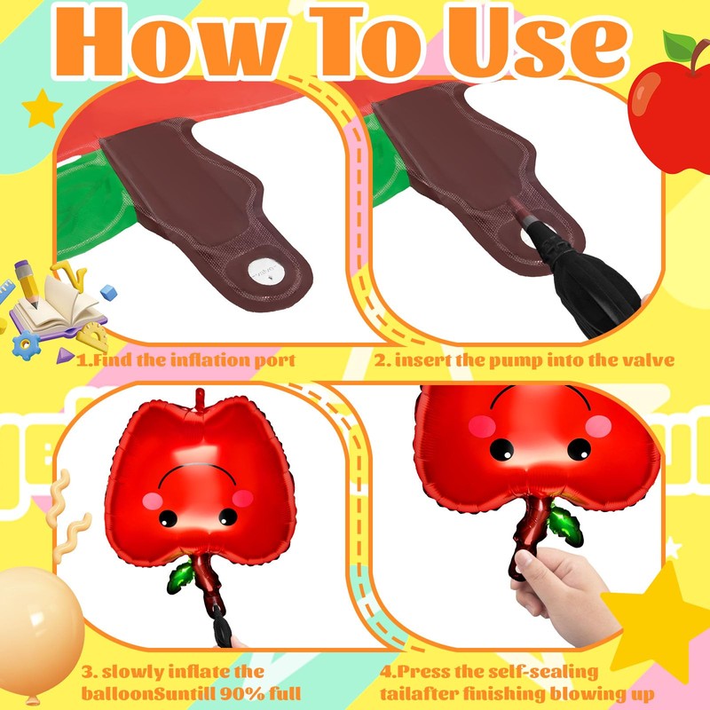 • Unique Design:These balloons have a unique design, bright colors, and unique apples and pencil shapes, which fits the school theme of the start of the school season very well and can create a good atmosphere for the start of the school season