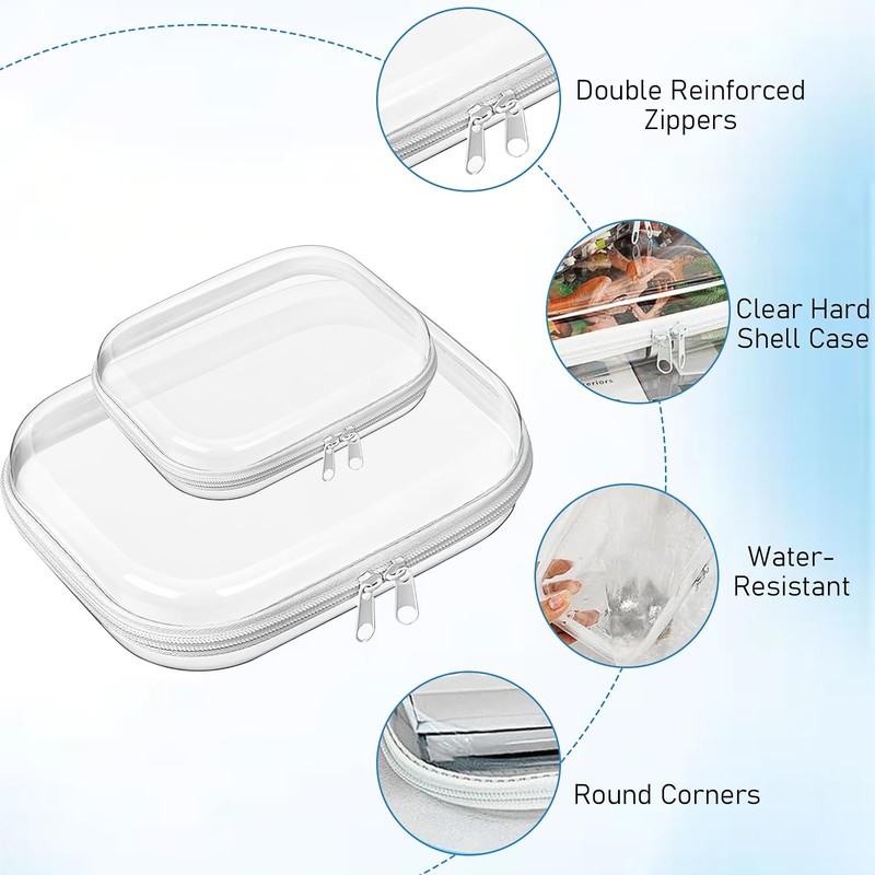 6 Pcs Transparent Zippered Hard Cases, Travel Storage Pouch, Waterproof Toiletry Bag TSA Approved, Clear Makeup Cosmetics Bag for Vacation, Bathroom, Organizing