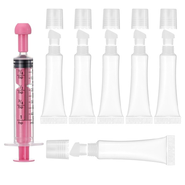 - 6-Piece Travel Dispensing Bottle Set: Contains 6 transparent polypropylene lipstick tubes (7.2×2.5cm/2.83×0.98 inches), matching pink syringes, plugs and bottle caps, perfect for dispensing lip balm, lotion and other skin care products, meeting travel and portable needs
