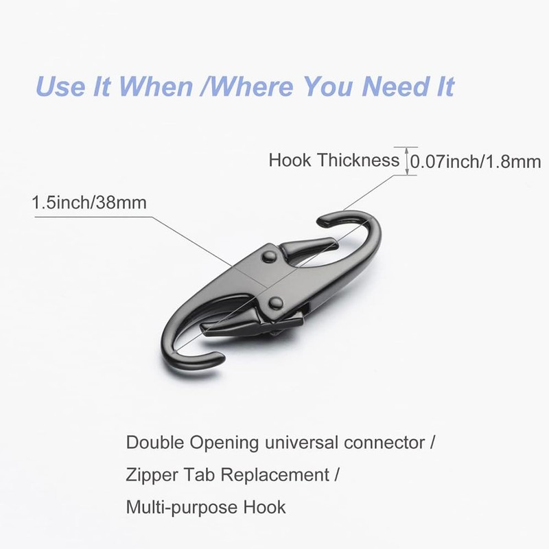 - 【Artful Design】Featuring a unique double-opening design, measuring 1.5 inches in length and 0.4 inches in width, they are easy to grip. They can serve not only as alternatives to zipper pulls but also as zipper connectors, ensuring the security of your belongings. Moreover, they can also function as hanging connectors or hook loops, effortlessly clasping and detaching items as needed.