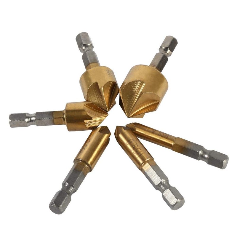 6-Piece Chamfer Drill Bit 6 mm - 19 mm Countersink 90 Degree 1/4 Inch Hex Shank HHS Material for Most Solid Drills and Hand Drills