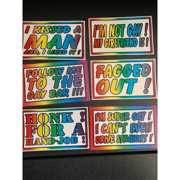 6 Piece Gay Prank Joke Bumper Stickers Decals 3x5” Kit Rainbow Free Gift New