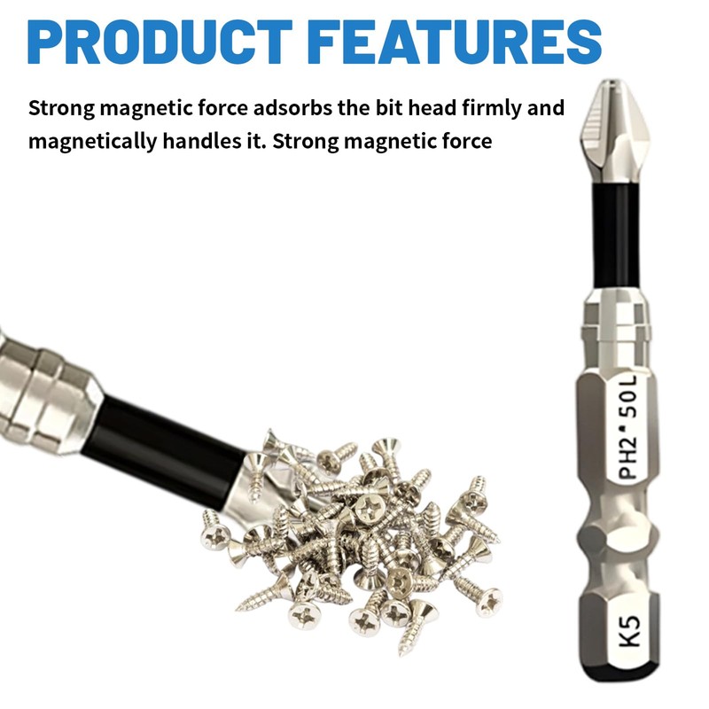 • Durable Alloy Steel Construction: Made with high-quality alloy steel, these magnetic screwdriver bits ensure long-lasting performance and durability, suitable for rigorous use in various applications
