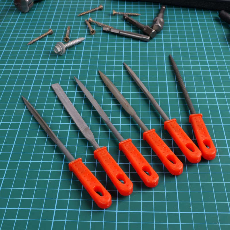 - This set includes six different needle files, each with a unique shape to cater to various filing needs. The shapes typically include flat, round, half-round, square, three-square, and equalling files, allowing for versatile use in different projects.