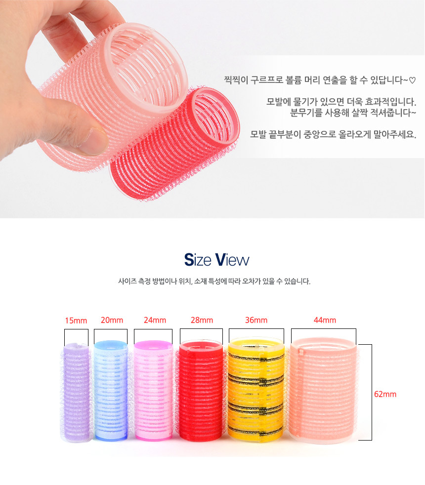 6-Piece Velcro Hair Rollers for Bangs 15mm 5ea