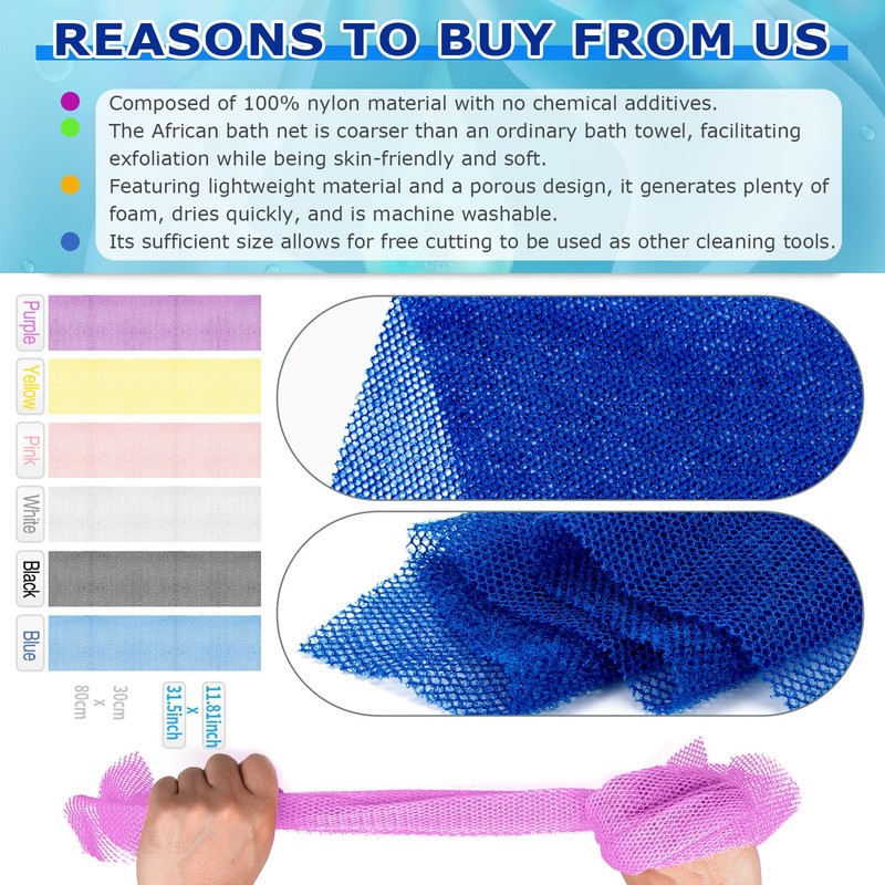 6 Pieces African Net Sponge Authentic Exfoliating Washcloth, Quick-Drying African Exfoliating Net for Smooth, Glowing Skin & Full Body Scrubbing(Yellow Pink Purple Black Blue White)
