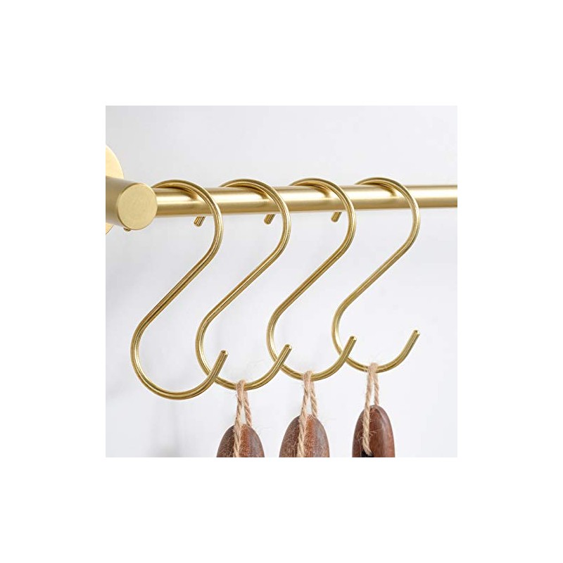 6 Pieces, Brass S Shaped Hooks, Gold Coat Clothes Towel Hangers, Kitchen Pots Pans Coffee Cups Rack Hooks