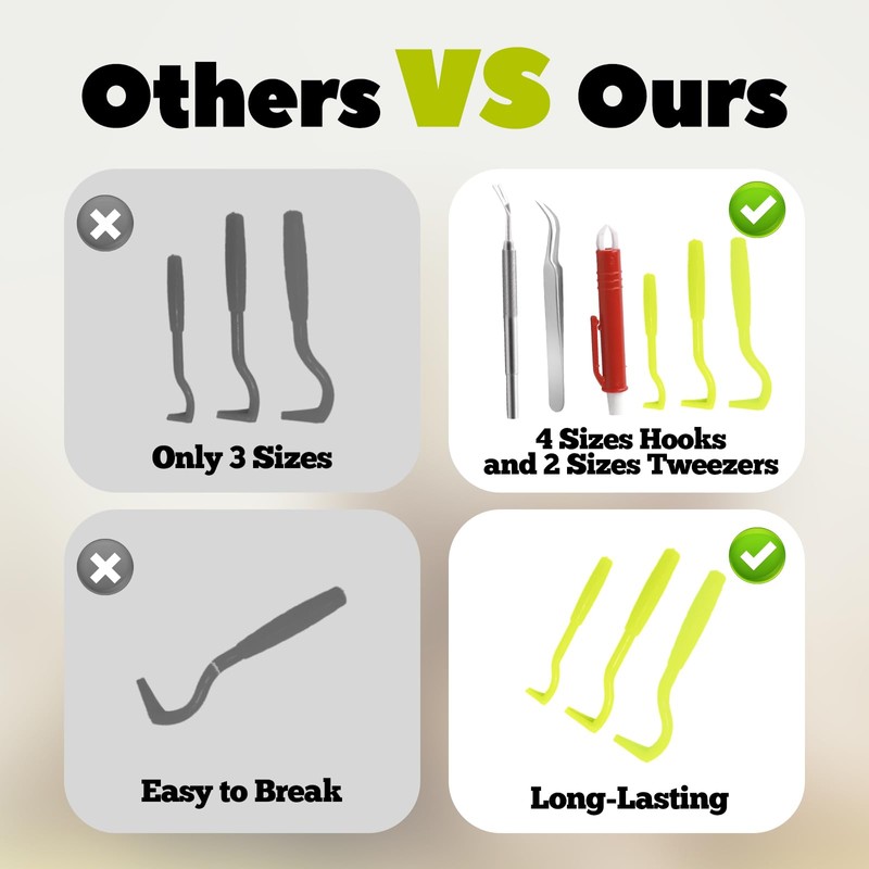 - Premium materials: our tick hooks and tick tweezers are made of high-quality plastic and stainless steel and ensure reliable and efficient removal of ticks and nymphs with ease.