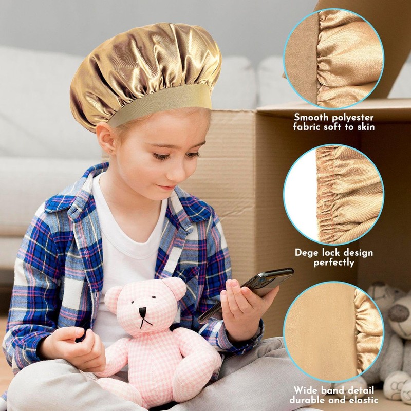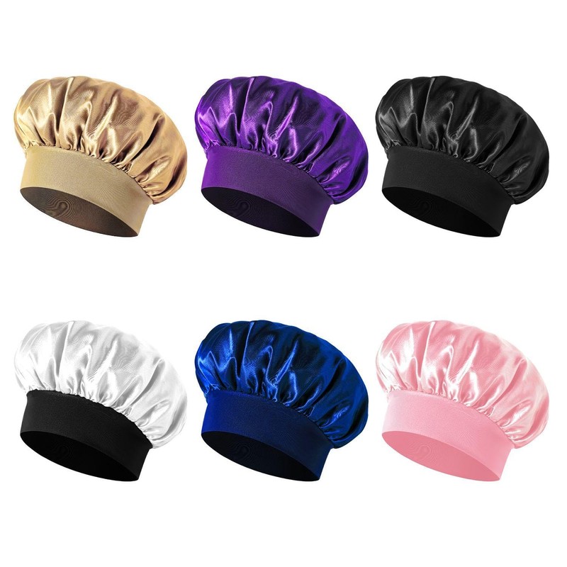 6 Pieces Children'S Nightcaps, Simple Solid Color Hair Care Cap, Elastic Small Round Cap, Reusable Shower Cap, Classic Soft Satin Hat.
