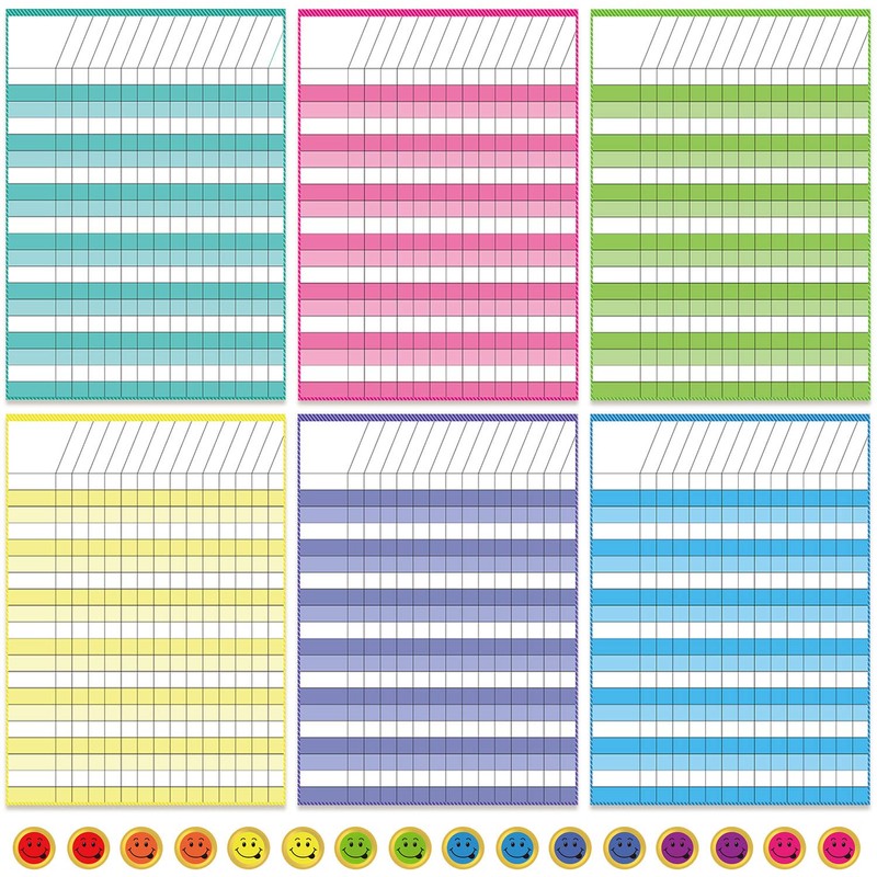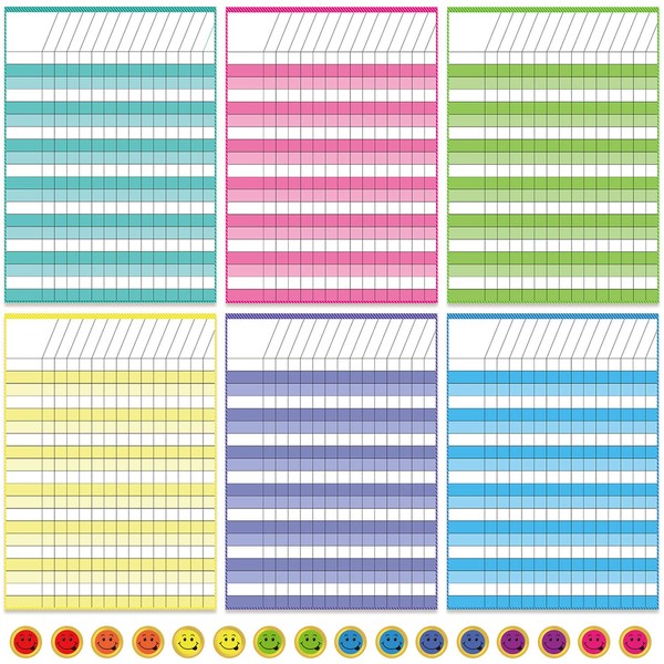 6 Pieces Classroom Charts Laminated Dry Erase Incentive Chart Reward Chores Chart for Learning Classroom School Attendance Homework Progress Tracking Pads with 240 Reward Stickers,21 Rows x 15 Columns