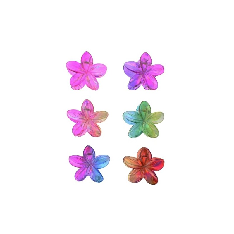 6 Pieces Large 8cm Assorted Two Tone Translucent Shiny Double Sided Hawaiian Flower Hair Clamps Claw Clips - Non-slip Jaw Clips Medium Hair Clamps for Thick Curly Long Hair, Wide Grip Hair Accessories