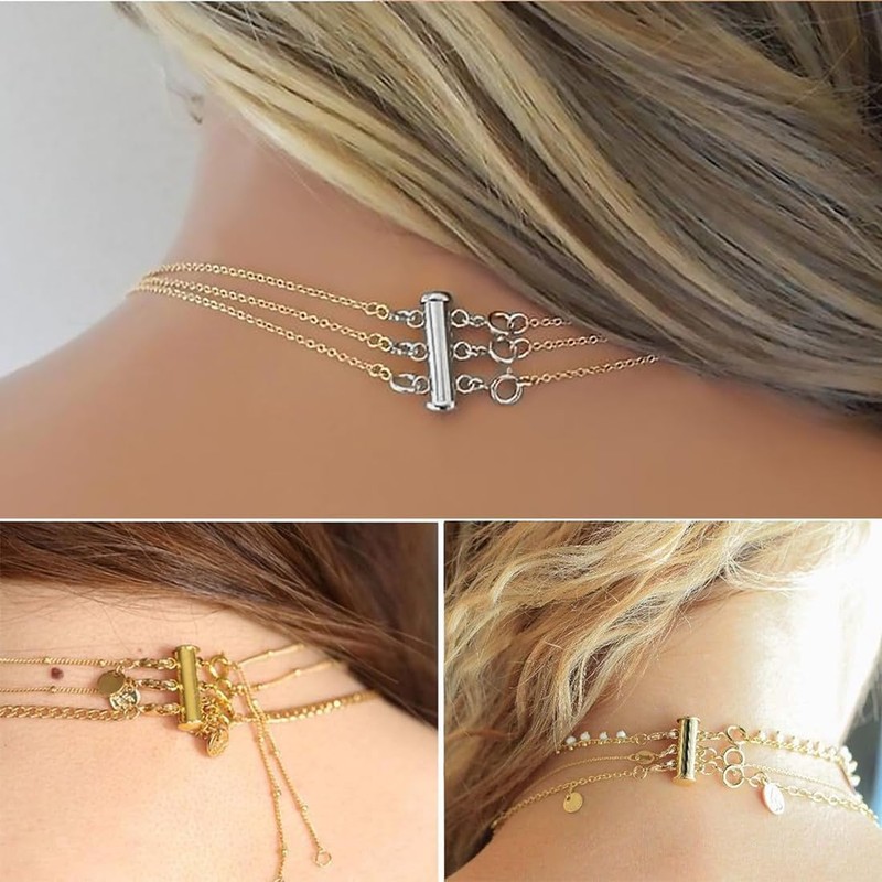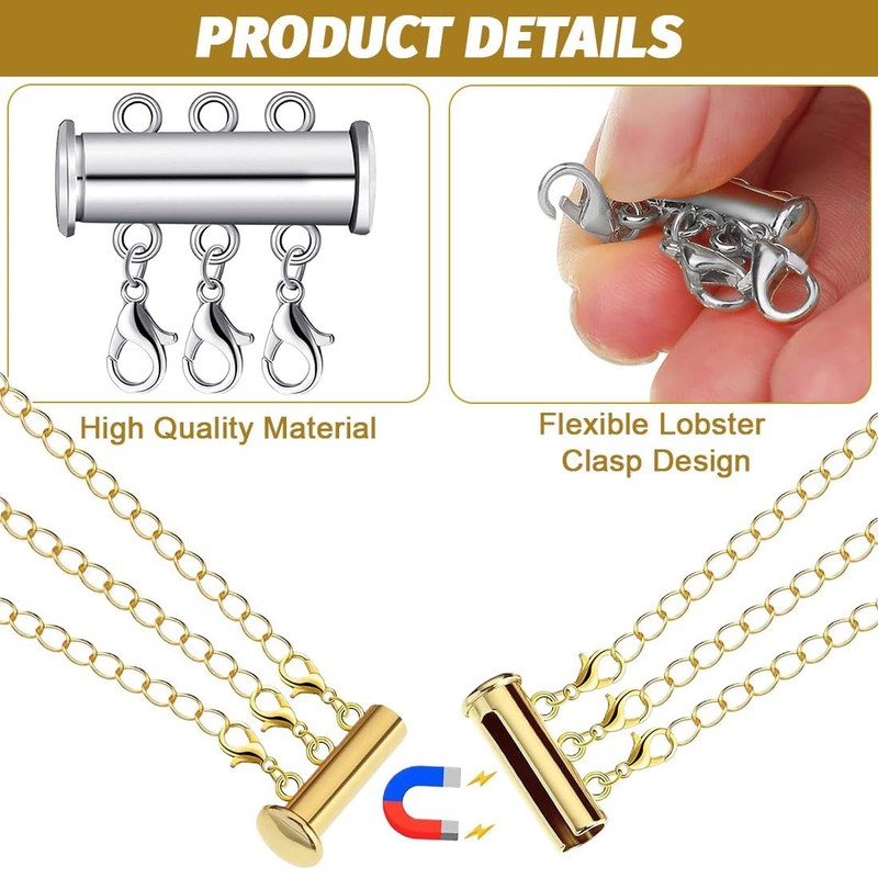 - Package includes: Get 6 pieces multi-row necklace layering clasps, including gold and silver, and three types of single-row, double-row necklace connection buckles and three-row necklace connection buckles.