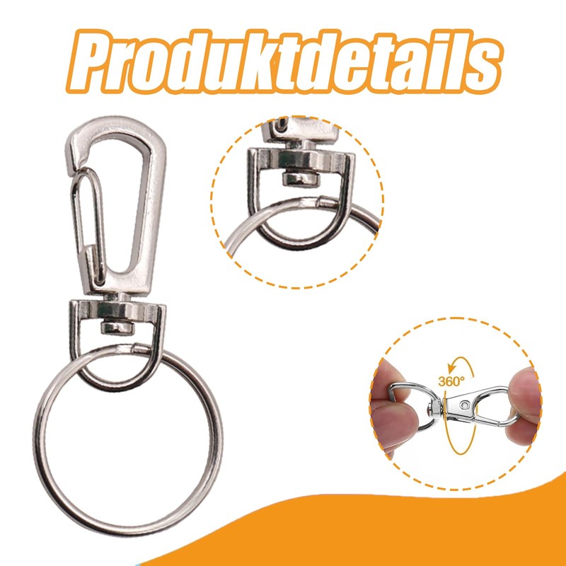 2. Both the key rings and the rotating carabiner are made entirely of a durable metal alloy and enclosed with a protective matt silver surface coating.