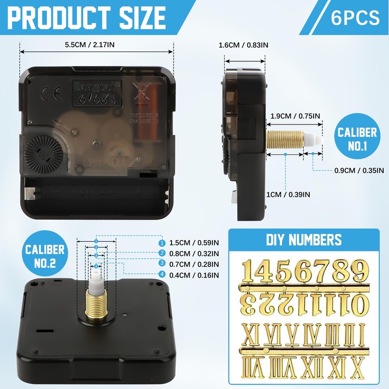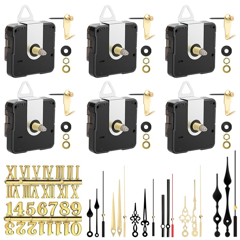 - DIY watch repair set: the movement set includes 6 clock movements for wall clock, 6 sets of hands and 6 hooks. These replacement parts are suitable for different types of watch frames and are suitable for repairing, replacing or DIY clockwork.