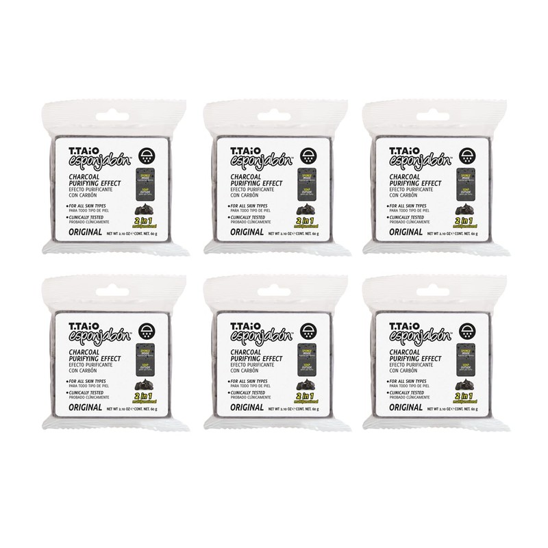 6 Piezas Esponjabon Carbón Activado Esponja + Jabón 2 en 1