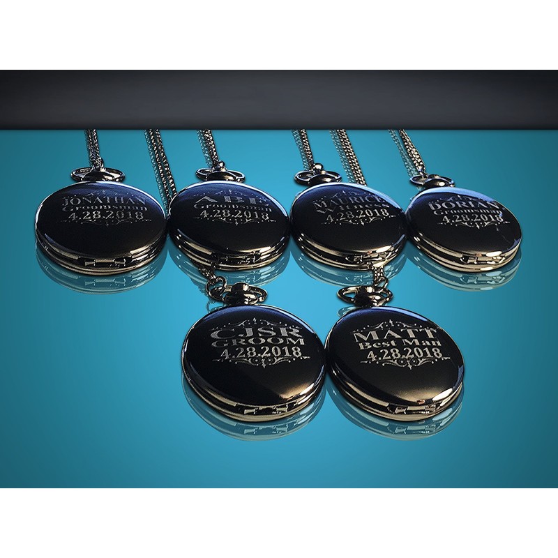 6 Pocket watches, Silver Groomsmen pocket watch gift set of 6. Box included, chain and engraving is included.