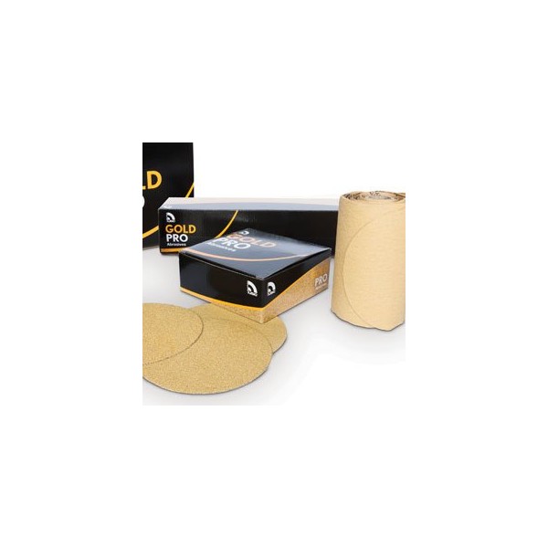 6" GOLD PRO Paperbacked Abrasive PSA Disc, P400 GOLD PRO's multi-layer construction combines sharp, precise grains with ultra-durable backing and a specialized coating to consistently achieve the fast, uniform finish body shops want. Special anti-clog coating extends product performance. Premium, bonded grains efficiently deliver fast, smooth results. Durable latex paper lasts longer and is ideal for wet and dry sanding 082316