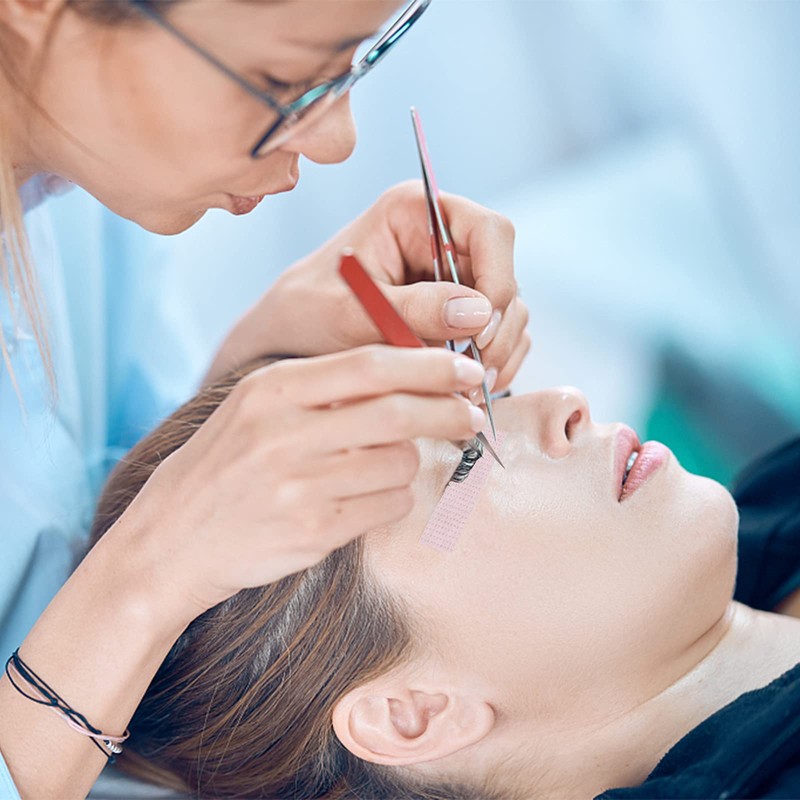 2. Tear off the corresponding tape on the lower eyelid to make trimming the villi and the length of the false eyelashes easier.