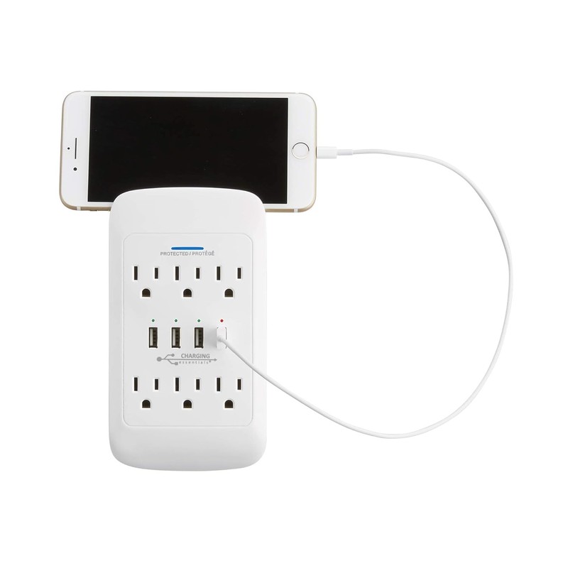 - 6 salidas de CA y 4 puertos USB; se conecta directamente a una toma estándar de 15 A