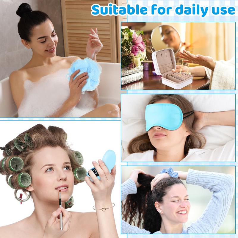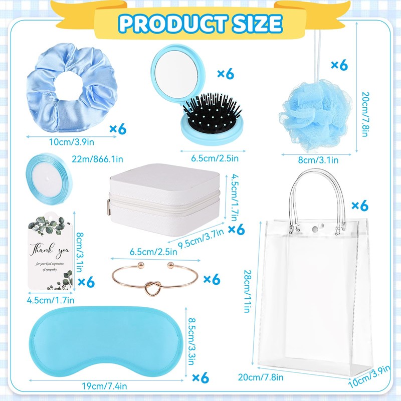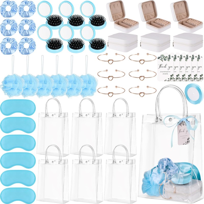 6 Set Baby Shower Game Prizes Baby Shower Gifts for Guests Travel Hairbrush Hair Rings Bath Sponges Eye Mask Love Bracelet Jewelry Box with Gift Bag for Baby Shower Games Bridal Shower Favors (Blue)