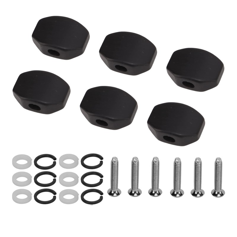 6 Set Guitar Tuning Peg Buttons Black Ebony Metal Machine Head Semicircle Buttons Replacement for Electric Folk Classical Guitars(Small Squares)