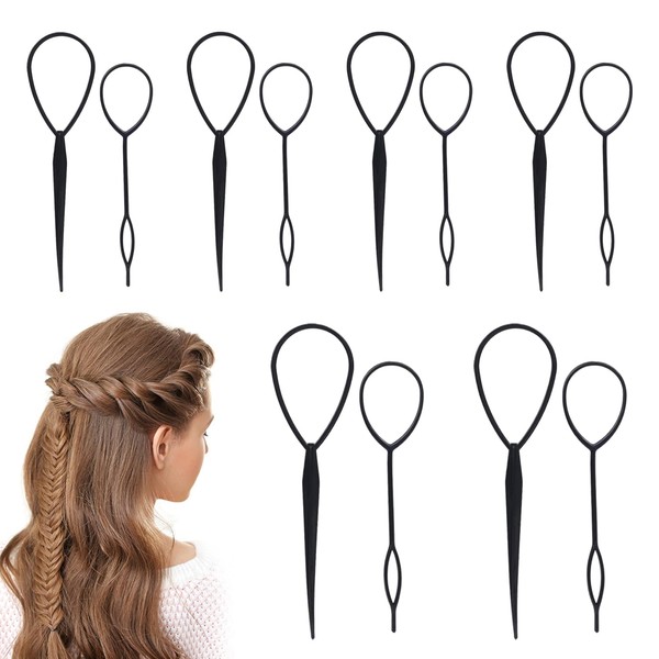 6 Sets Hair Braid Maker,Plastic Braid Accessories Ponytail Making Tool,Suitable for Women's DIY Ponytail Styling Tool (Black)
