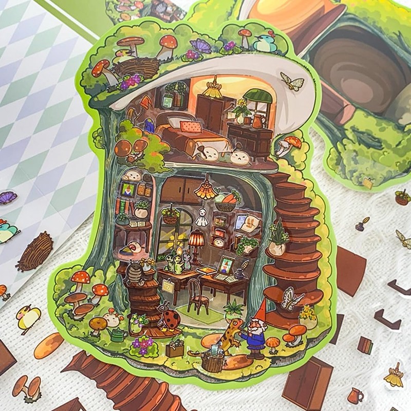 - 6 Unique 3D Miniature Scenes – Includes 6 different creative house scenes: Pirate Treasure Ship, Starry Night Observatory, Egyptian History Museum Hall, Modern Punk Plant Loft, Post-Apocalyptic Zombie Camp, and Mushroom Hut. Each design is rich in details for immersive sticker art fun.