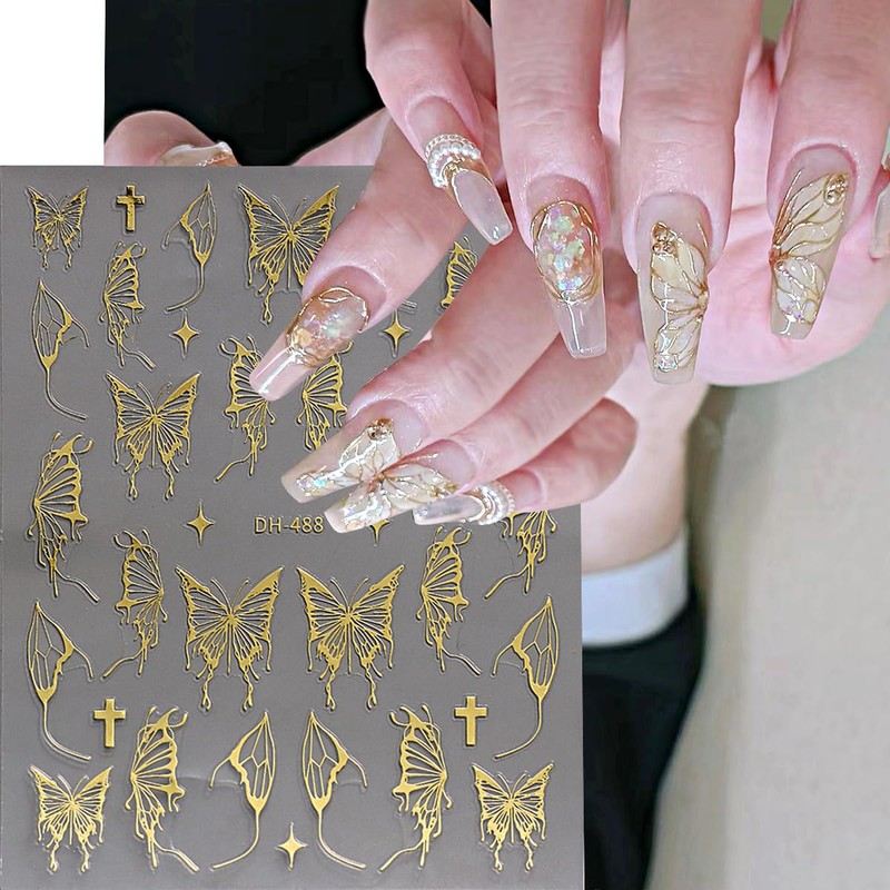 - 【Easy to Use】Butterflies nail decals for acrylic nail is self-adhesive and requires no glue, just remove sticker then stick this 3d nail decals on your nail. Apply top coat gel to seal to make the stickers last longer.