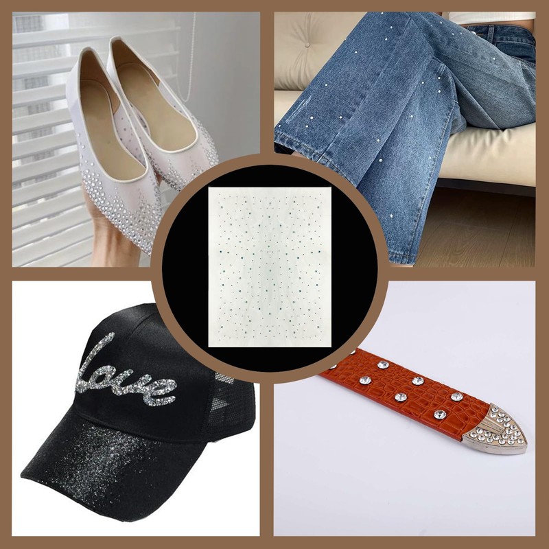 - EASY TO US: Hot melt rhinestone transfer paper is easy to operate, as long as you tear off the back of the sticker, the transfer sticker in the place you want to DIY, in the use of a hair dryer or electric soother ironing can be. The rhinestones of the hot melt rhinestone transfer paper are arranged irregularly, you can use it directly or cut it according to your needs, creating conditions for your DIY needs.