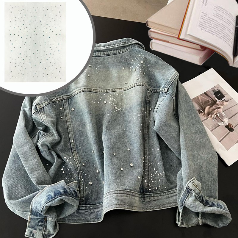 Hot melt rhinestone patche is easy to operate, just tear off the sticker on the back, stick the transfer sticker on the place you want to DIY, and iron it with a hair dryer or electric soother. The rhinestones of the hot melt rhinestone transfer paper are arranged irregularly, like a river of stars, you can use it directly or cut it according to your needs to meet your DIY needs.