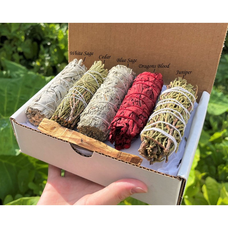 6 Smudge Stick SAMPLER Gift Box #1 White Blue Cedar Juniper Dragons Blood & Palo
