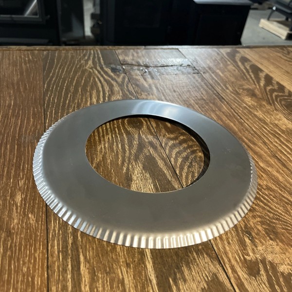 Stainless steel trim collar for use with 6” stainless or black stove pipe