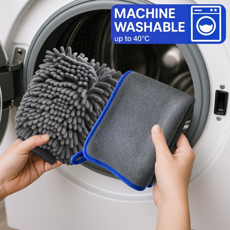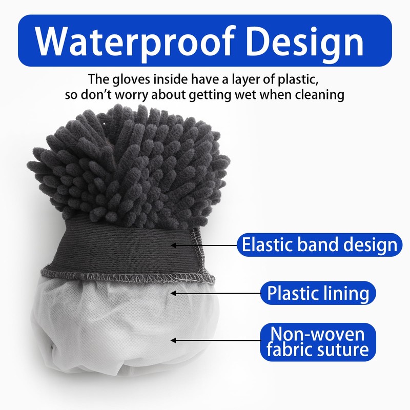- 【Sanfte Handwäsche mit hervorragender Saugfähigkeit】 Der doppelseitige Mikrofaser-Chenille-Waschhandschuh nimmt das bis zu 7-fache seines Gewichts an Seifenwasser auf und ermöglicht so eine schnellere Reinigung ohne Lackkratzer. Das wasserdichte Innenfutter der Handschuhe hält Ihre Hände beim Waschen trocken.