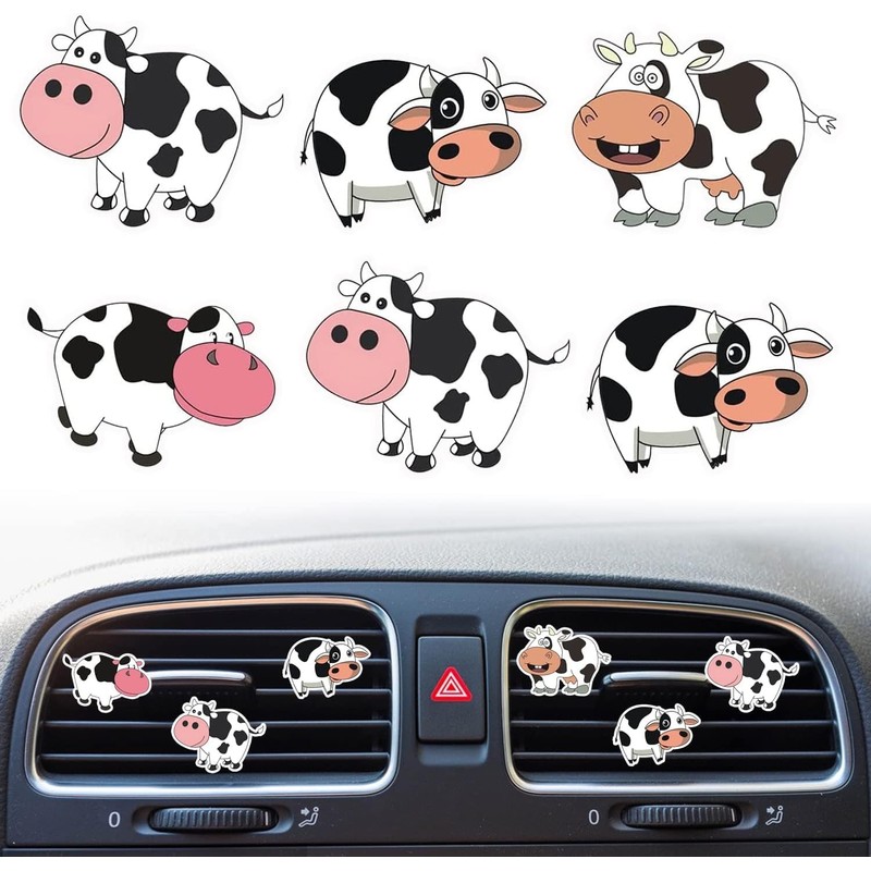 - Lieferumfang: Set mit 6 Clips für Lüftungsschlitze mit Kuhdruck, die sowohl als Lufterfrischer als auch als dekoratives Zubehör für Ihren Fahrzeuginnenraum fungieren
