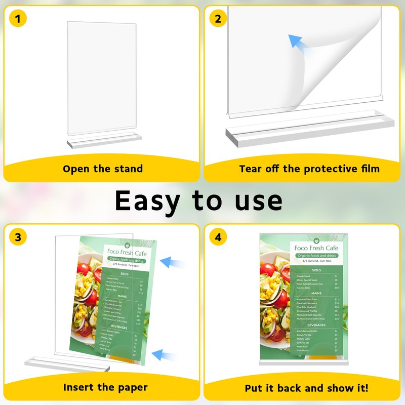 - Vielseitig einsetzbar: Der transparente plakatständer ist vielseitig einsetzbar und kann in Büros, Restaurants, Geschäften, auf Hochzeiten, in Supermärkten und Cafés eingesetzt werden. Er eignet sich perfekt für die Präsentation von Flyern, Werbebroschüren, Speisekarten und Fotos.