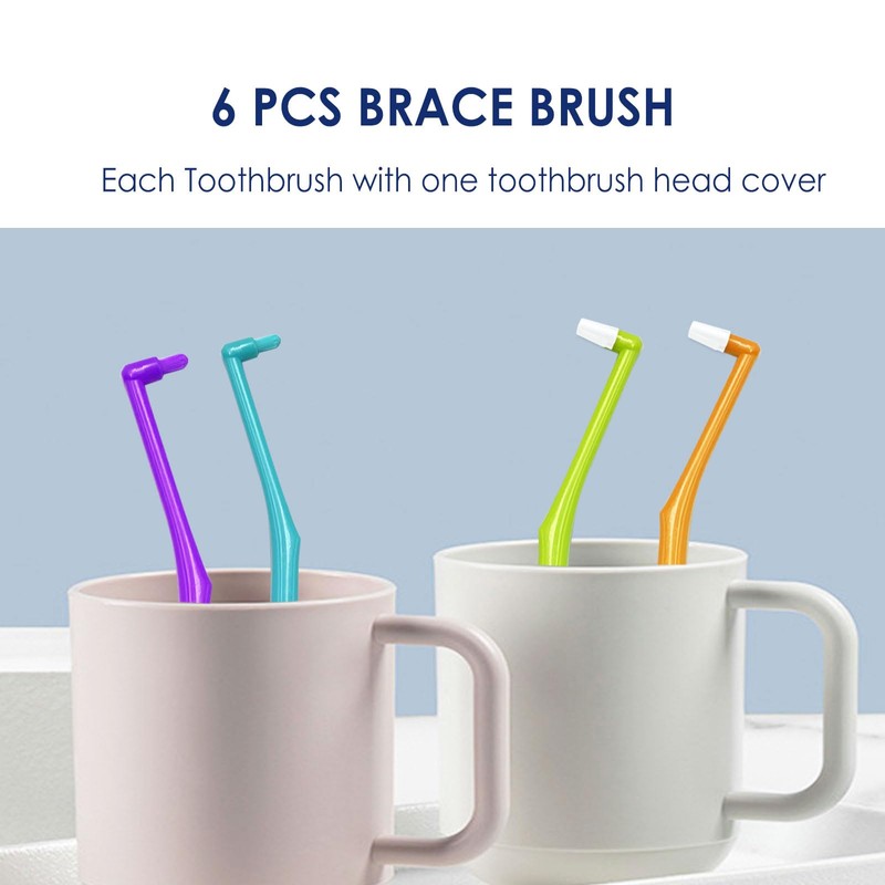 6 Stück Zahnspangenbürste Interdentalbürsten mit Weichen Borsten für Backenzähne Weisheitszähne Feinreinigung