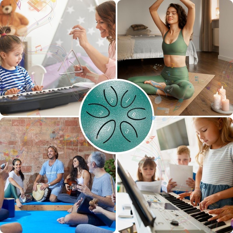 Stellen Sie sich vor: Ein sonniger Nachmittag im Garten. Sanfte Klänge Ihrer grünen Stahlzungen-Trommel (3 Zoll/7,6 cm) vermischen sich mit dem Rascheln der Blätter. Jeder der 6 harmonischen C-Dur Töne entspannt Körper und Geist.Gefertigt aus robustem Stahl mit wasserfester Beschichtung. Perfekt für: Meditationsübungen zu Hause Musiktherapie-Sessions Entspannung im Freien Kreatives Spiel mit KindernMaterial: Hochwertiger StahlFarbe: NaturgrünDurchmesser: 3 Zoll (ca. 7,6 cm)Gewicht: Leicht für unterwegsLieferumfang: Trommel + Schlägel
