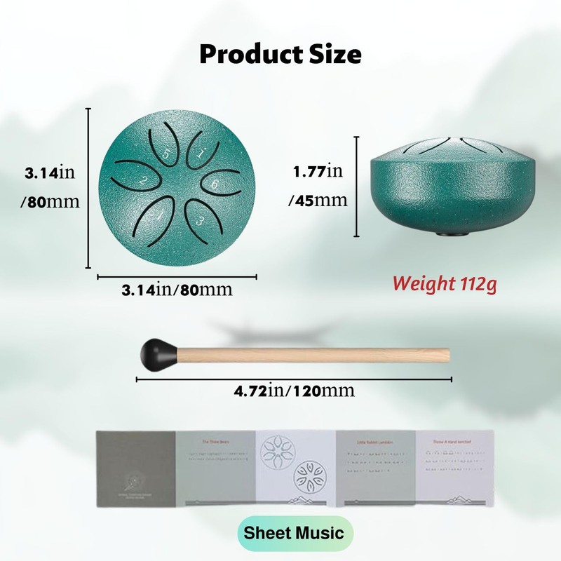 - [6 harmonische Töne] Die Stahlzungen-Trommel erzeugt 6 wohltuende Klänge in C-Dur, perfekt für Meditation, Musiktherapie oder entspannte Momente. Die sanften Vibrationen fördern Konzentration und innere Ruhe.