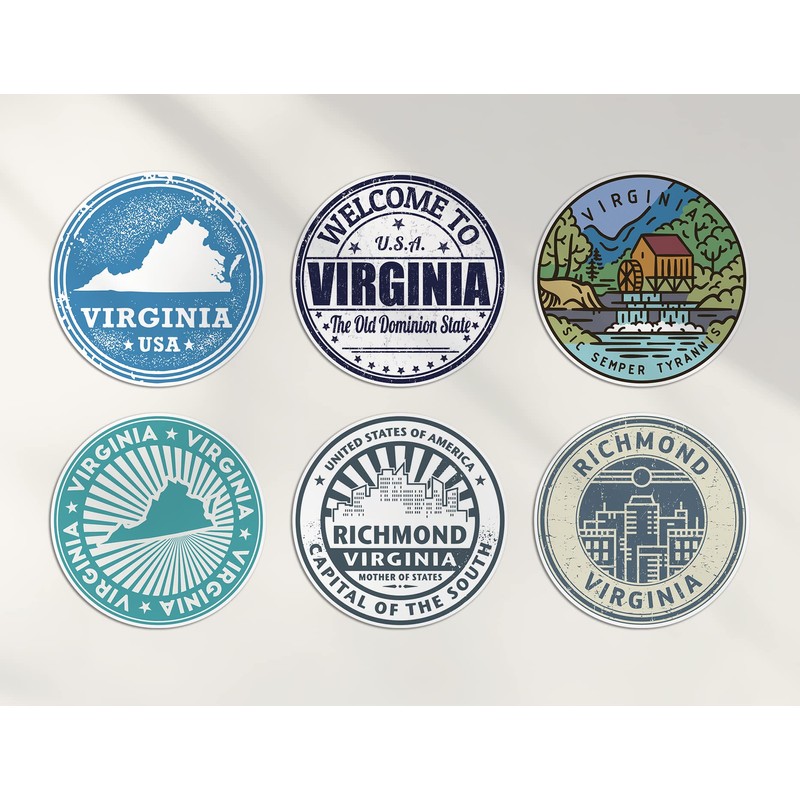 6 x 10cm Virginia Vinyl Stickers - Richmond US State America Travel Map Flag Holiday Luggage Design Gift #78822