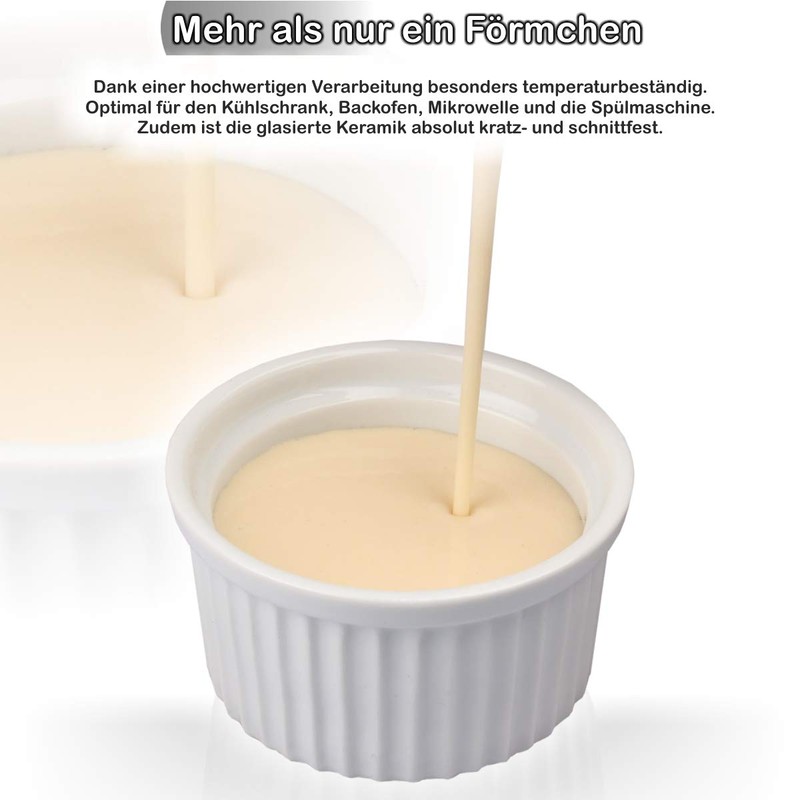 - Universal: with these small bowls you have the perfect moulds for serving your creme brulee, chocolate cake, ragout or delicious dip. Thanks to its optimal size (capacity approx. 180 ml), the ceramic bowls are universally applicable.