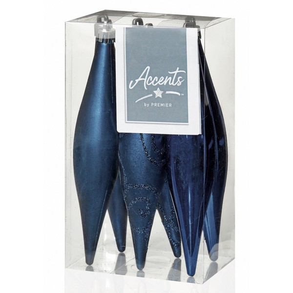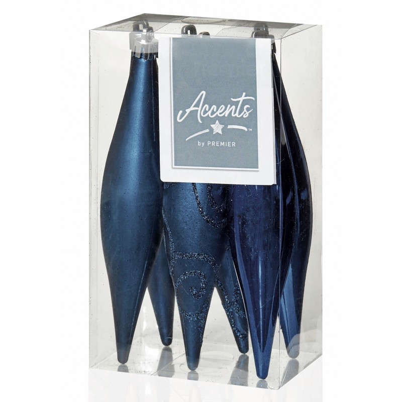 6 x Midnight Blue Icicle / Tear Drop Christmas Tree Baubles by Premier
