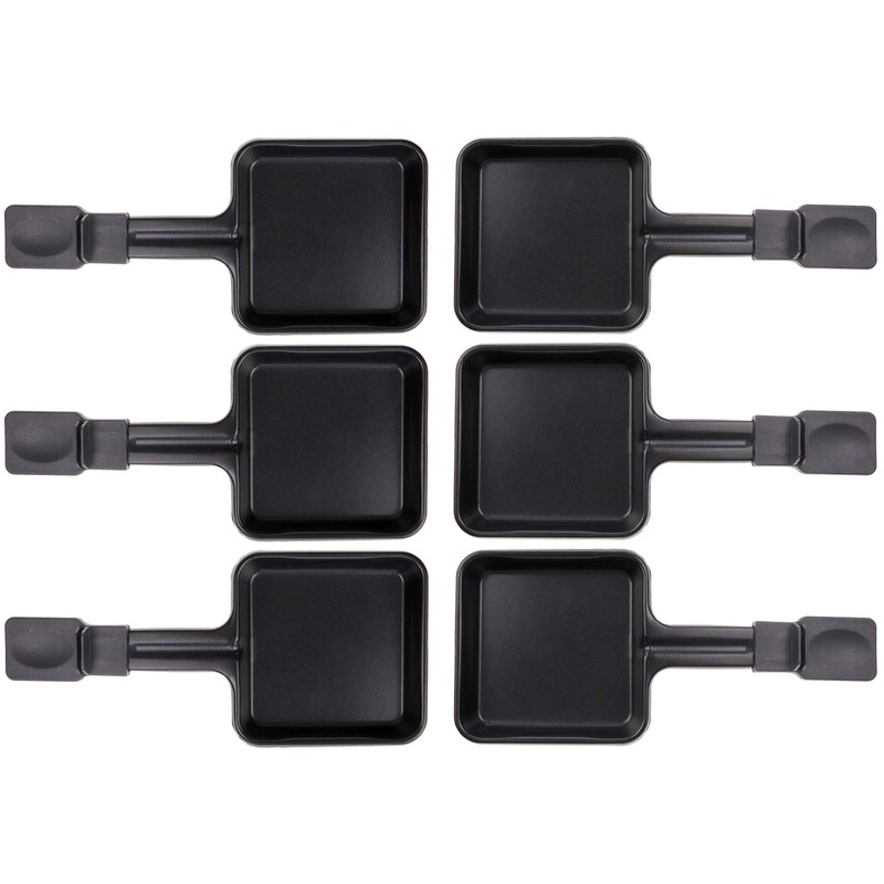 6 x Raclette Pans 23178 10 x 10 cm, Extra Long Handle, Universal for Raclettes (see text for dimensions)