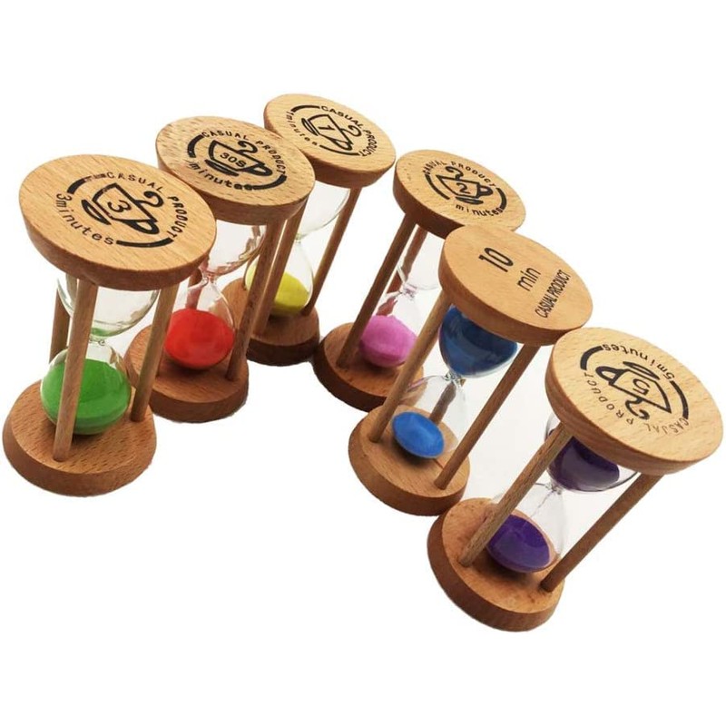 • 6 times and colours: the hourglass set is 30 seconds, 1 minute, 2 minutes, 3 minutes, 5 minutes, 10 minutes, 6 different times and each colour is different.