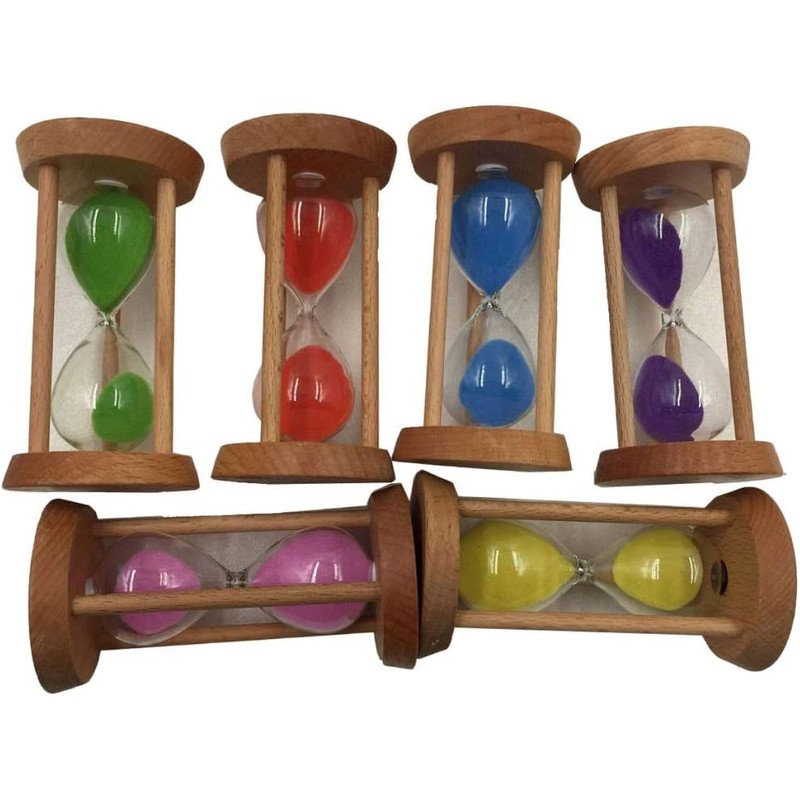 Description: - Hourglass time counter with excellent quality, count down timer hourglass. - Time management props, remind you of your learning time, children's timer toy gift, early education centre, learning timer, yoga exercise timer, serve catering timer, practice timing to practice your patience and perseverance. - Nice gift for friends, beautiful ornaments for home and office, practical tools in daily life. - For cooking in the kitchen, mask-making, playing, reading or studying, exercising, sauna, brushing teeth, resting, etc. - And can also be used in coffee houses, restaurant and bathroom as a timer. Specification: - Material: wood - Size: - Round (diameter x height): approx. 5 cm × 9 cm / 1.97 inches × 3.54 inches. Timer: 30s + 1 min + 2 min + 3 min + 5 min + 10 min. Package includes: Pack of 6 hourglasses. Note: 1. Due to the light and screen differences, the colour of the item may differ slightly from the pictures. 2. Please allow 1-3 cm difference due to manual measurement