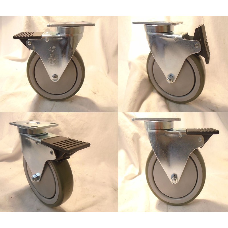 6" x1-1/4 Swivel Caster with Gray Polyurethane Wheel with Brake, Supports 300 lbs Each(4), Perfect for Chairs, Medical Equipment, Display Cases, Carts