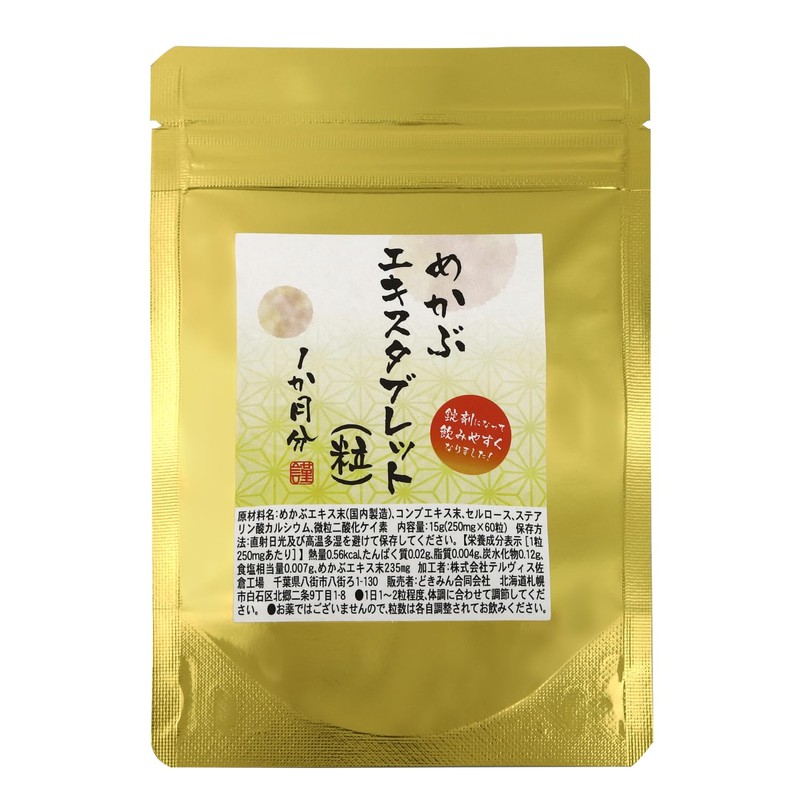 北海道産めかぶエキスタブレット 60粒 1か月分 1粒に北海道産めかぶエキス末235mg配合 アルギン酸 フコイダン カルシウム マグネシウム