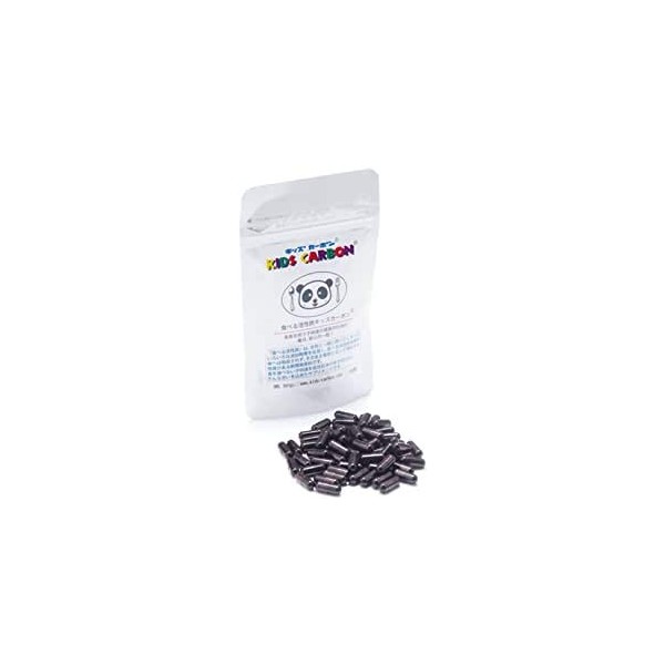 - 食べる活性炭「キッズカーボン」は、活性炭を主原料として開発された食品です。食べる活性炭「キッズカーボン」は、食物と一緒に摂ってしまったいろいろな添加物等を吸着し、食べる活性炭自体、体へは吸収されず、そのまま糞便となって排出する性質がある新開発原料です。