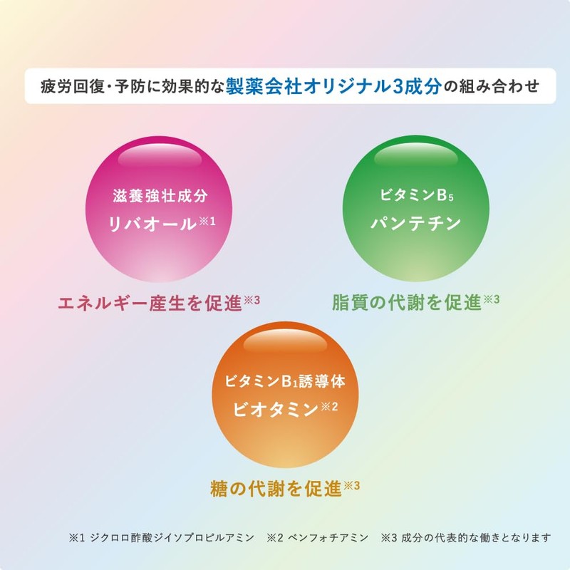 - ✅[ 製薬会社オリジナル3大成分 ] 医療用で50年以上の使用実績がある、これらの3大成分をギュッと凝縮しました①サポート成分 リバオール(ジクロロ酢酸ジイソプロピルアミン)②ビタミンB1 誘導体 ビオタミン(ベンフォチアミン)③ビタミンB5 パンテミン